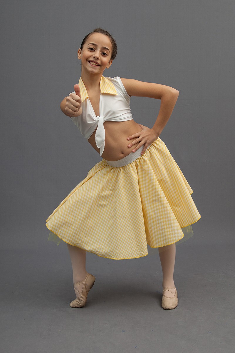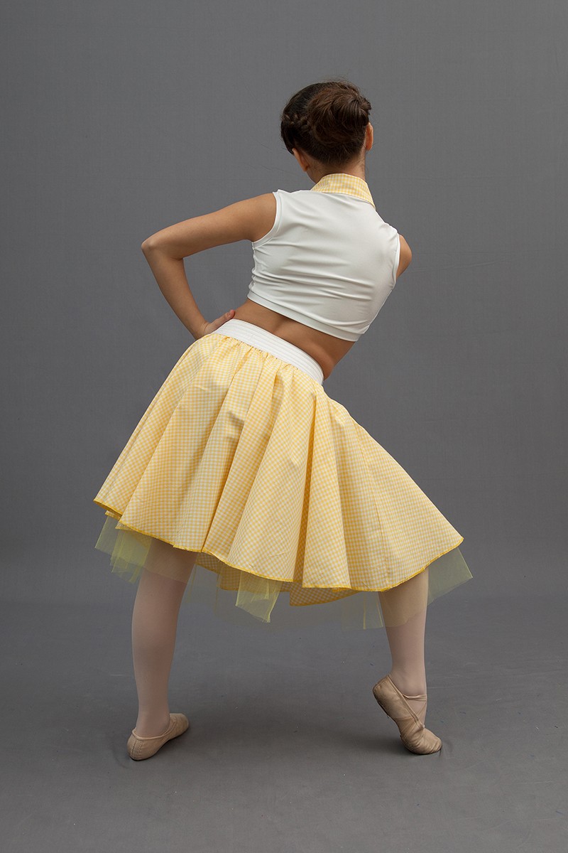 Gonna a ruota in tessuto a quadri con uno strato di tulle semirigido che fuoriesce dalla gonna